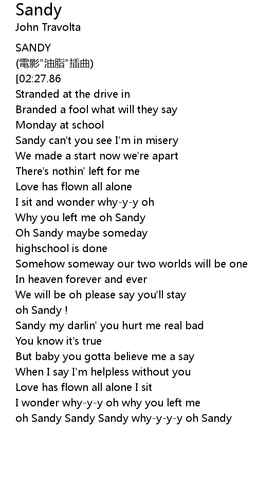 | [00:51.13] | Why you left me oh Sandy |