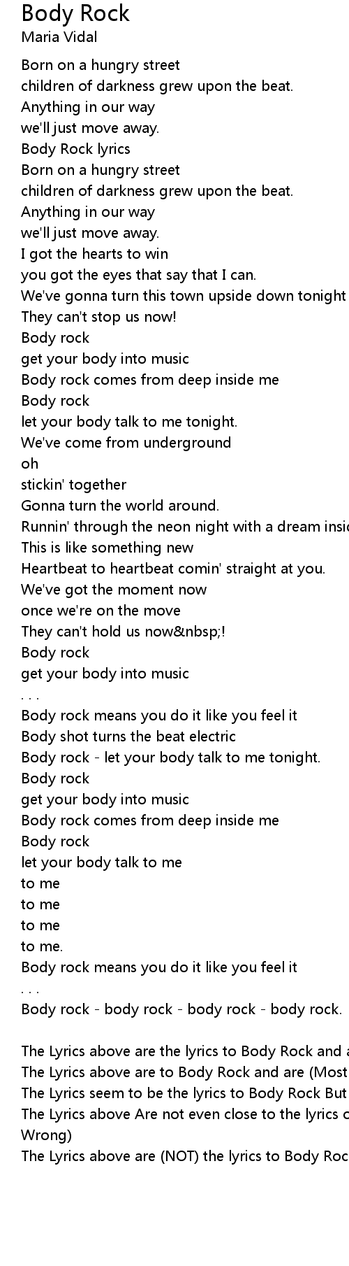 The Lyrics above are (NOT) the lyrics to Body Rock