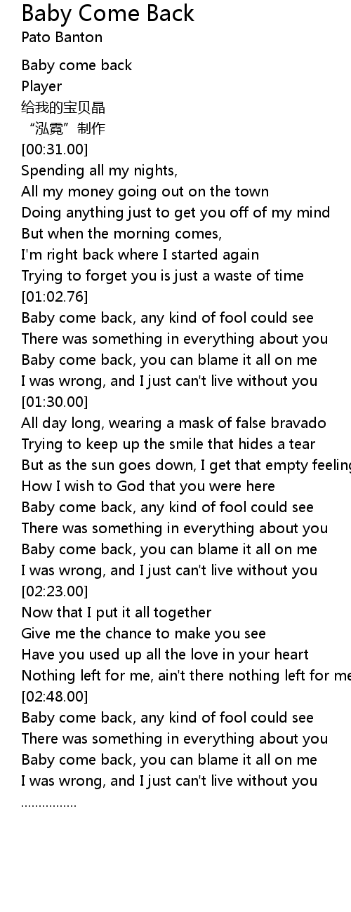 | [00:01.00] | Baby come back |