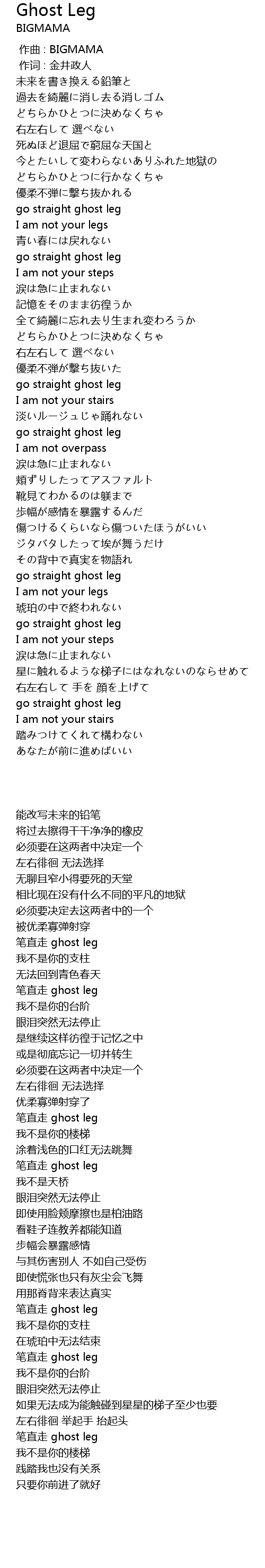 | [02:54.79] | 笔直走 ghost leg |