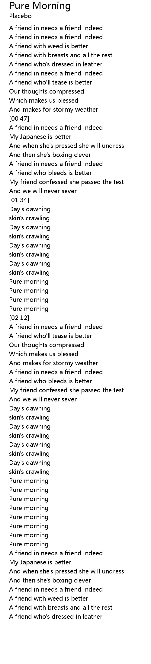 A friend in needs a friend indeed |