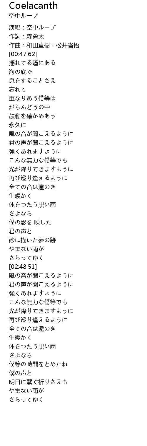 | [01:40.55] | 全ての音は遠のき |