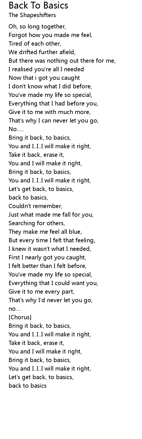 Bring it back, to basics, |