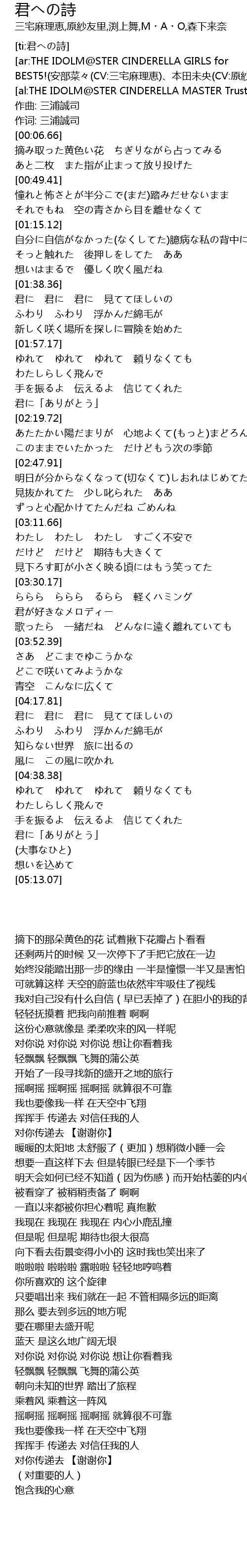 | [03:39.29] | 歌ったら 一緒だね どんなに遠く離れていても |