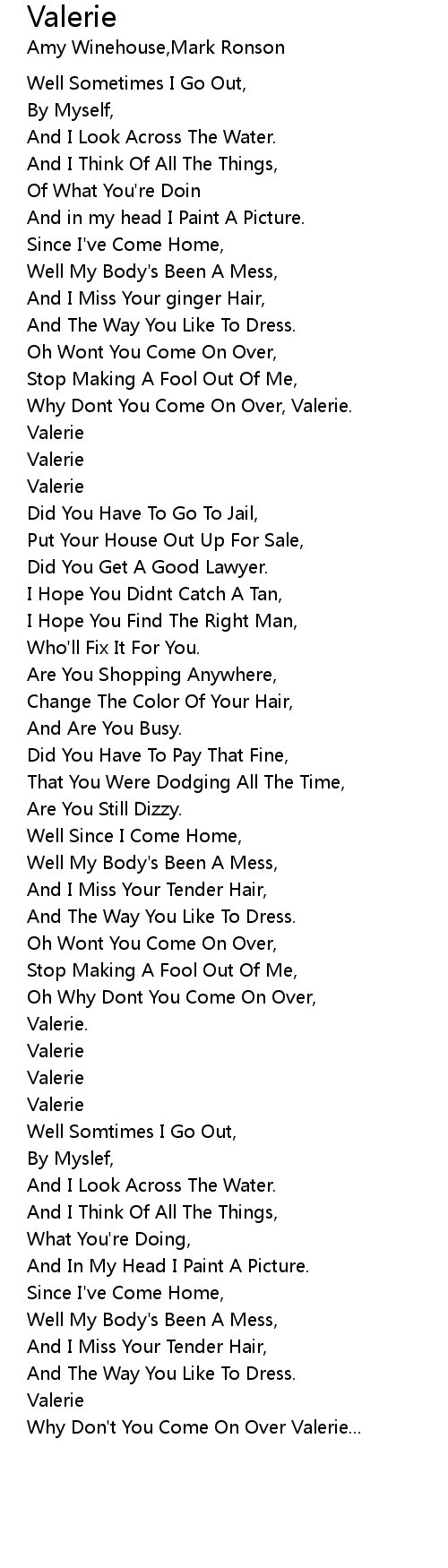 Why Don't You Come On Over Valerie... |