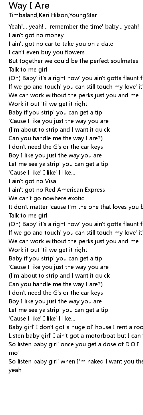 Boy I like you just the way you are |