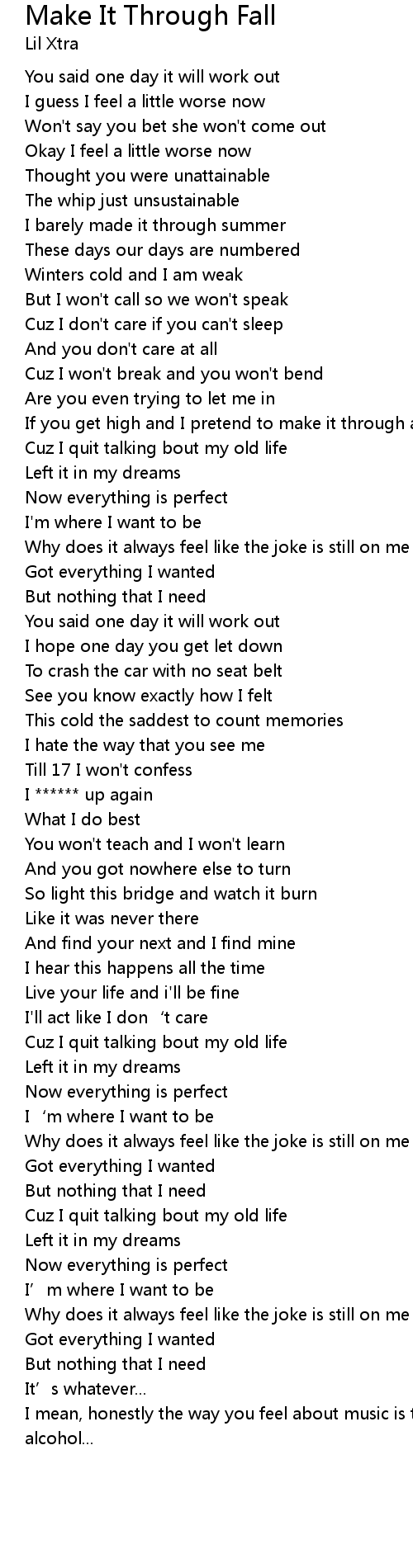 | 歌曲 | Make It Through Fall |