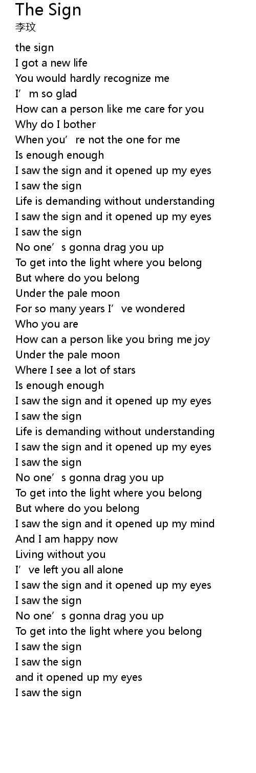 | [03:16.99] | I saw the sign and it opened up my eyes |