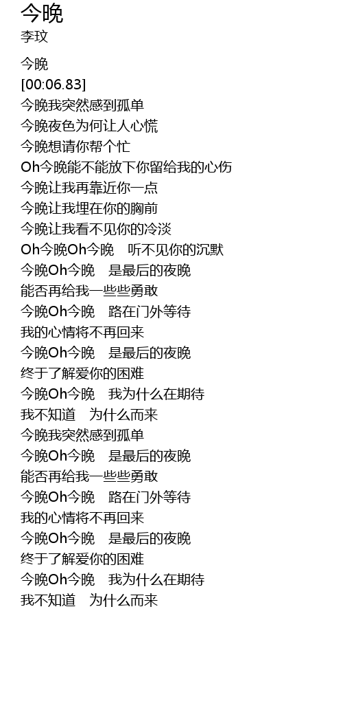 | [00:00.00] | 今晚 |