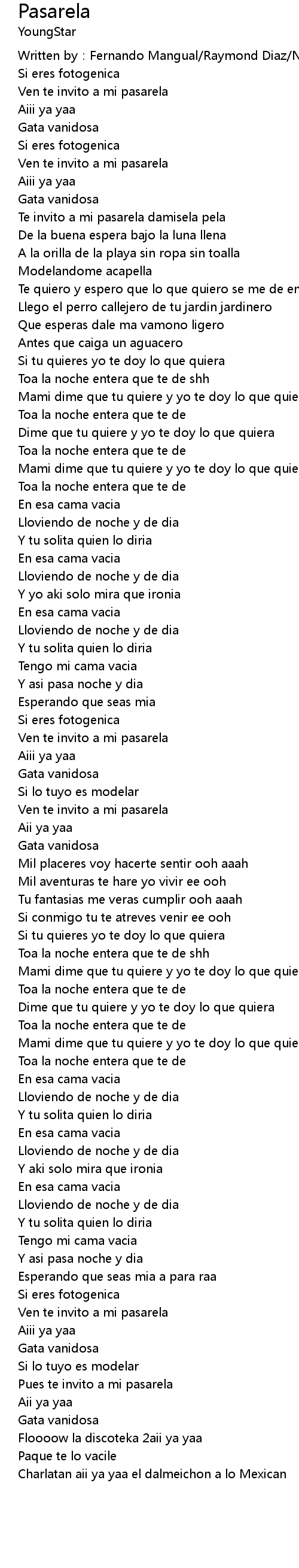 | [00:34.589] | Te invito a mi pasarela damisela pela |