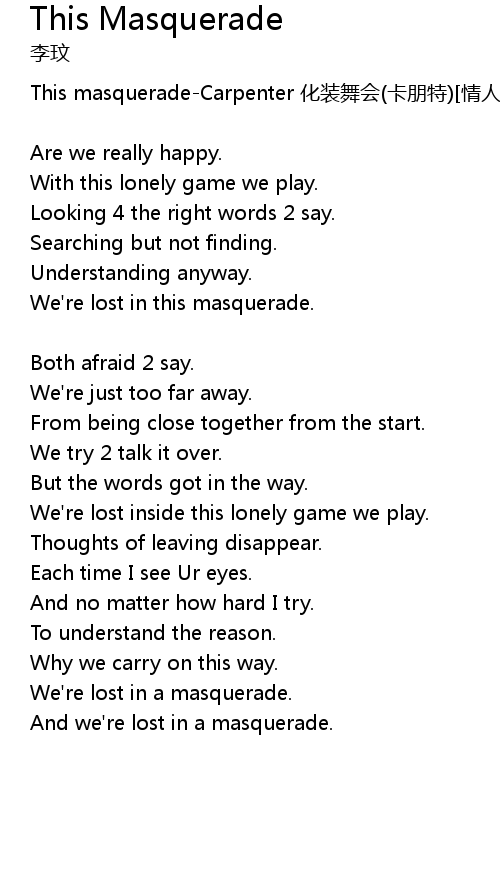 | 歌曲 | This Masquerade |