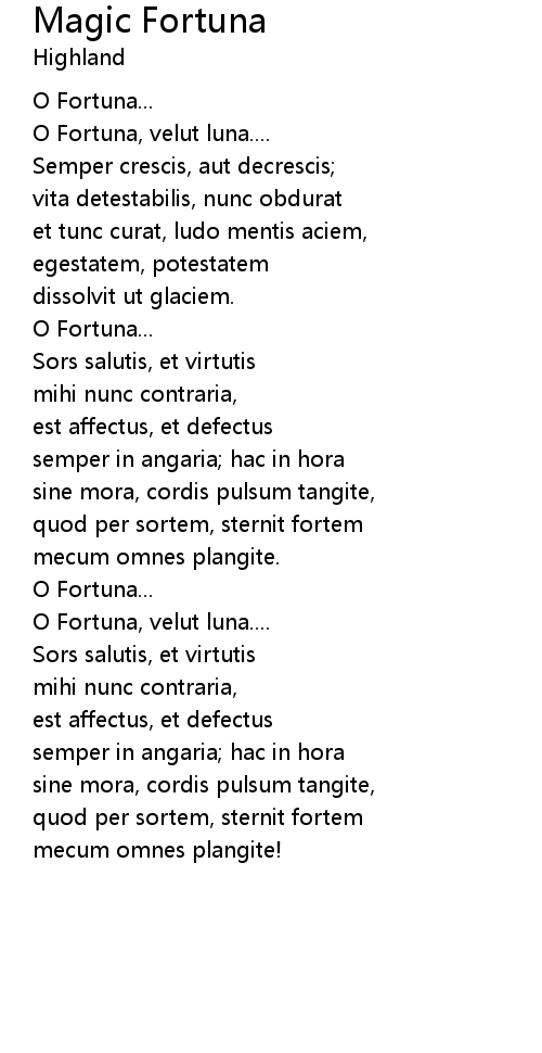 O Fortuna...