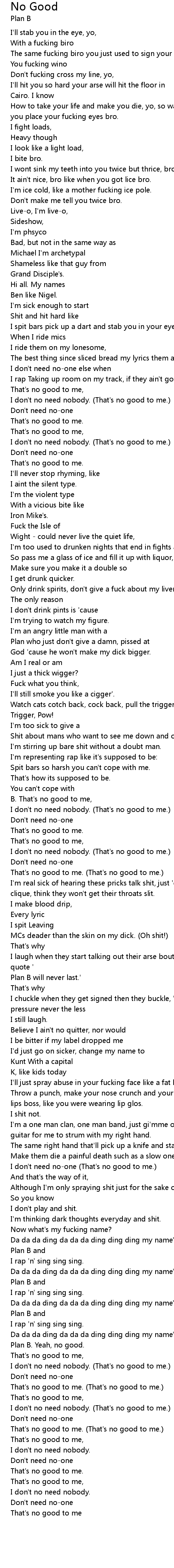 I don't need no-one (That's no good to me.) |