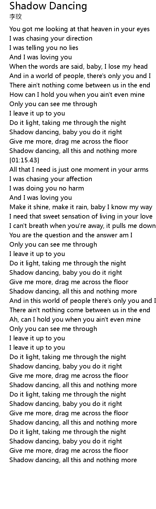 Shadow dancing, baby you do it right |