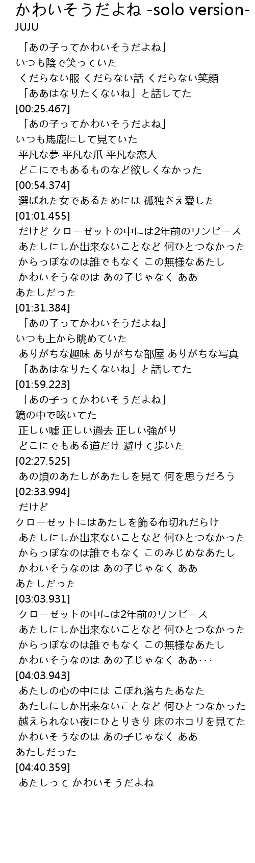 [04:24.037] かわいそうなのは あの子じゃなく ああ あたしだった