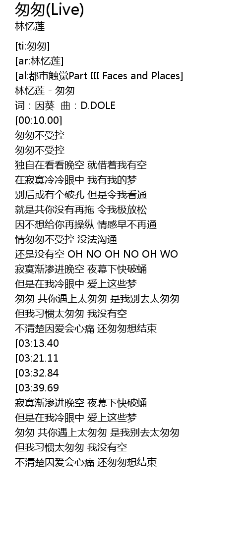 | [04:10.71][03:32.84][02:06.92] | 情匆匆不受控 没法沟通 |