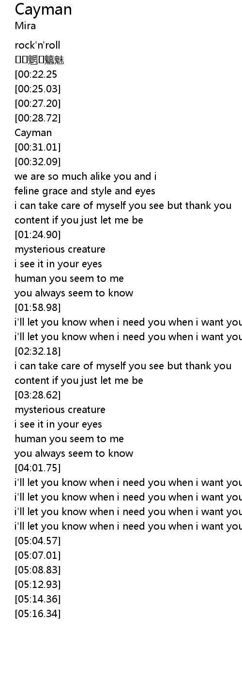 | [02:01.32] | i'll let you know when i need you when i want you |