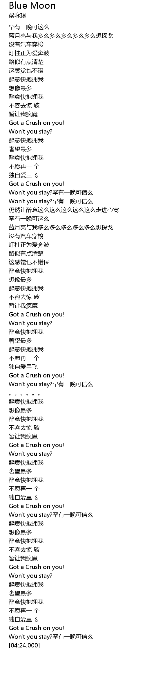 | [03:45.000] | Won' t you stay? han you yi wan ke xin me |