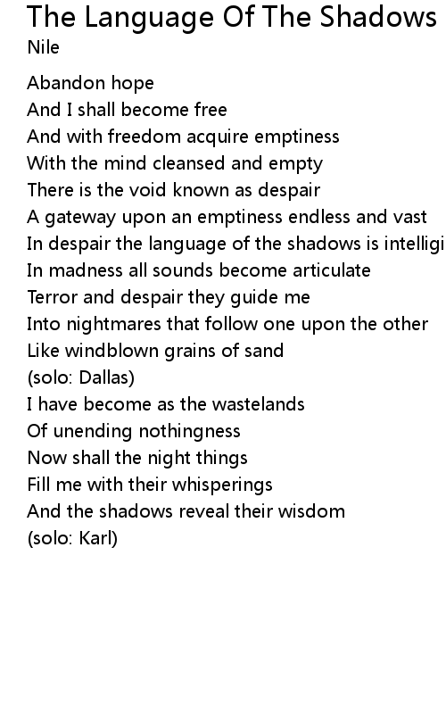 In despair the language of the shadows is intelligible |