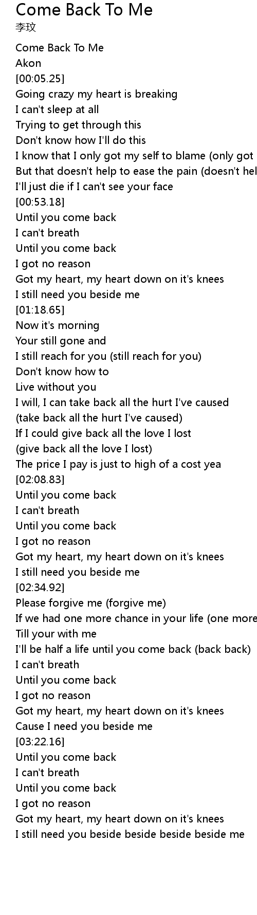 Come Back To Me |