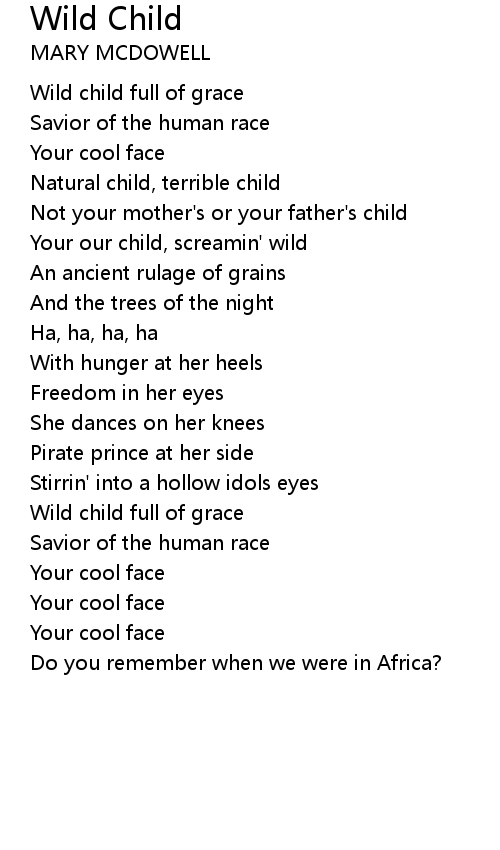 | Your our child, screamin' wild | |
