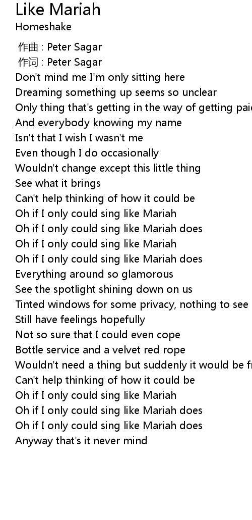 | [02:46.29] | Oh if I only could sing like Mariah does |