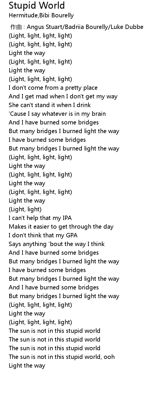 | [02:59.92] | The sun is not in this stupid world, ooh |