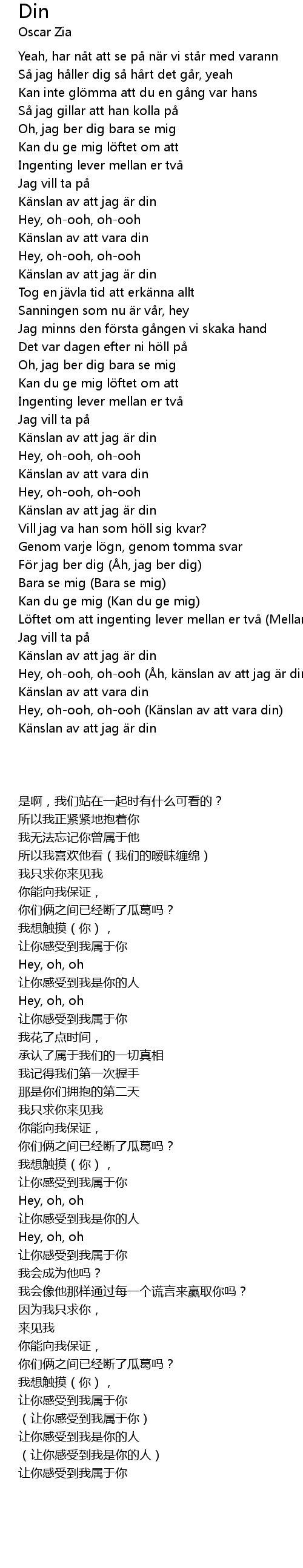 | [02:28.37] | Hey, ohooh, ohooh h, k nslan av att jag r din |