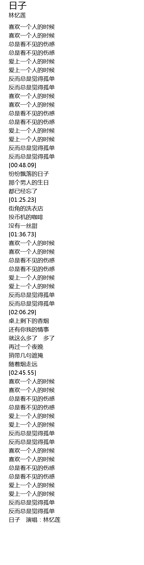 | [03:33.22] | 日子 演唱:林忆莲 |