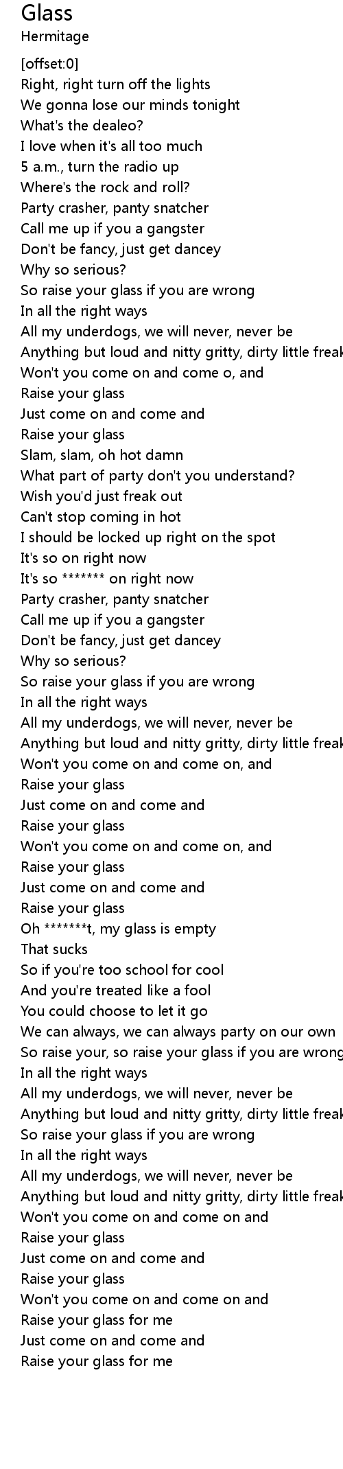 [02:04.31] Oh *******t, my glass is empty