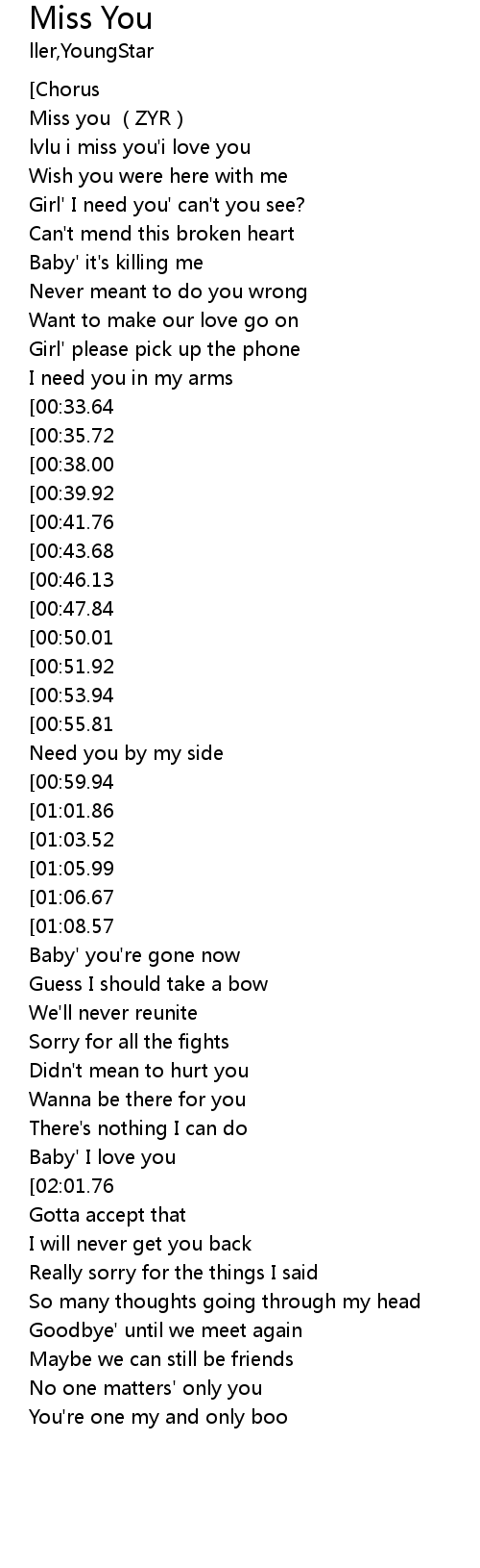 | [03:25.23][01:06.67] | Miss you |