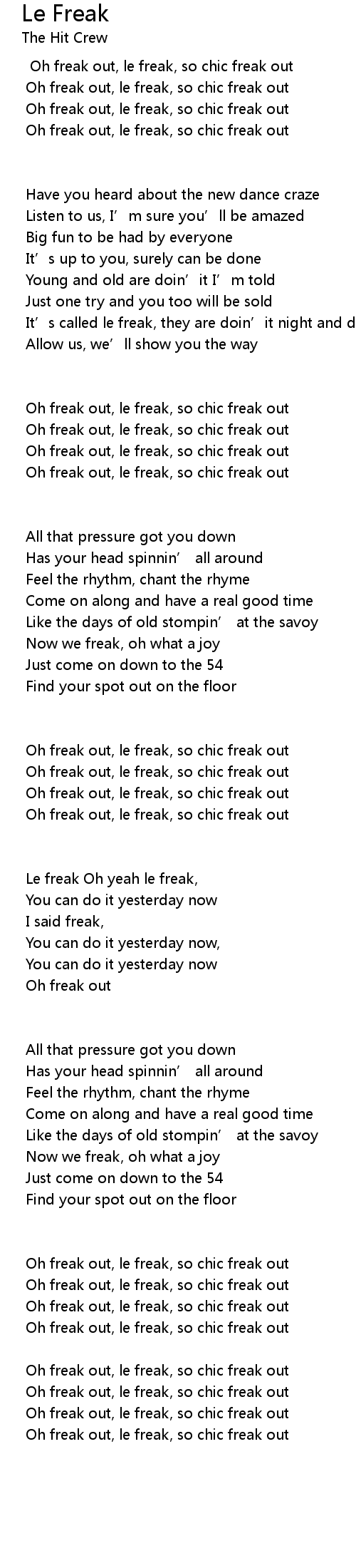 | Oh freak out, le freak, so chic freak out |