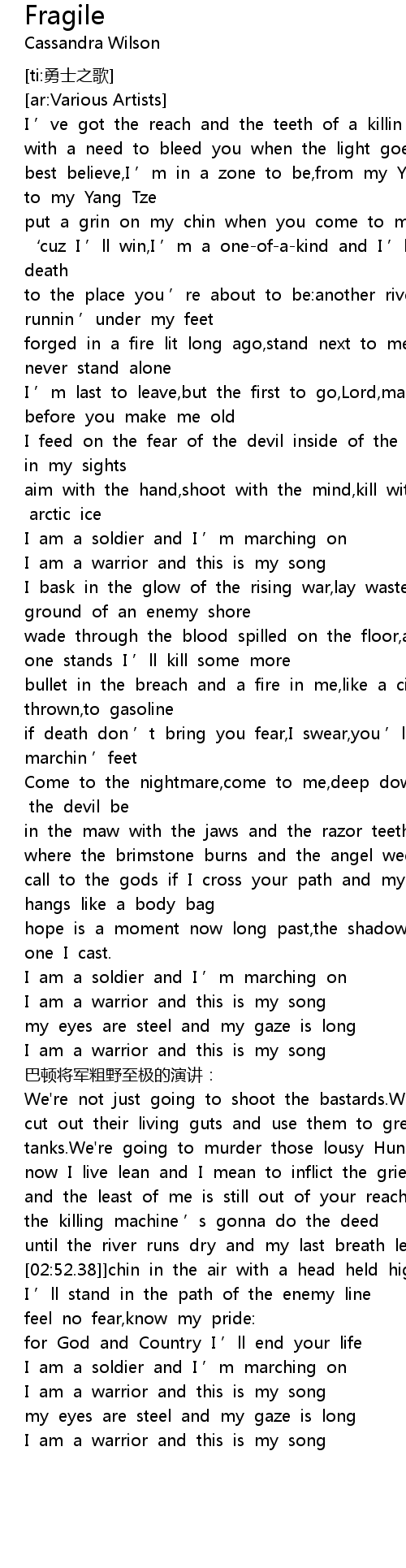 | [02:05.86] | I am a soldier and I ' m marching on |