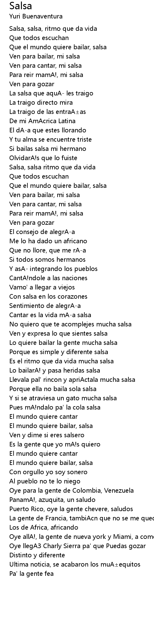| [00:15.21] | Salsa, salsa, ritmo que da vida |