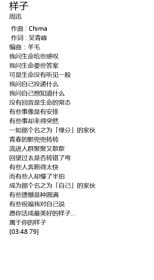 | [00:48.51] | wo wen zi ji tou di shen me |