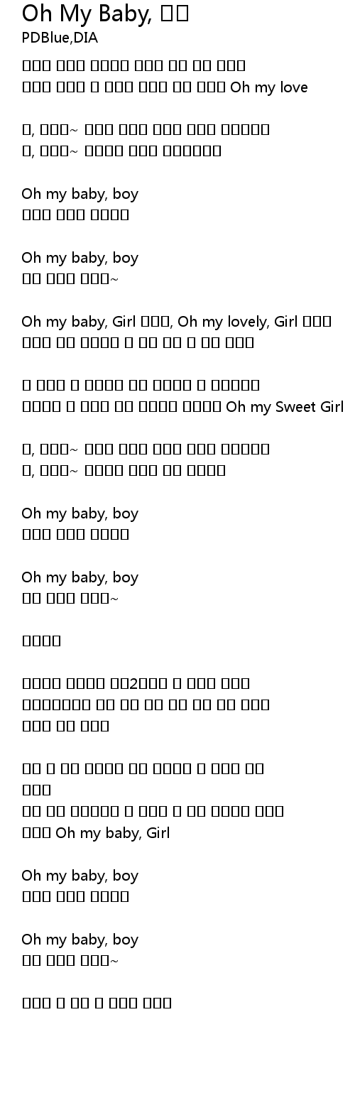 Oh my baby, Girl 그대는, Oh my lovely, Girl 사랑해 |