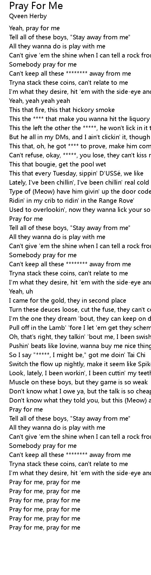 | [00:00.31] | Yeah, pray for me |