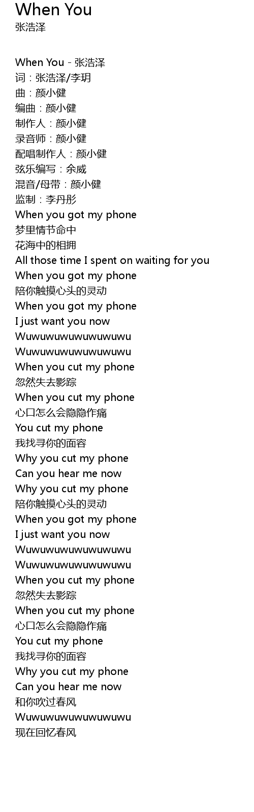 | When You - 张浩泽 | |
