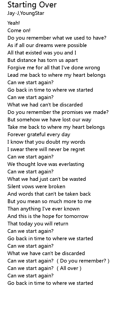 | [03:30.93] | Can we start again? All over |