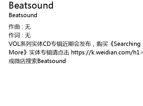 | VOL系列实体CD专辑近期会发布,购买《Searching For Something More》实体专辑请点击 https://k.weidian.com/h1=RmI-3 或微店搜索Beatsound |