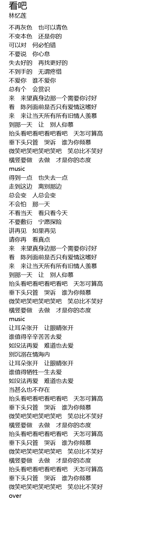 | [04:08.16] | tai tou kan ba kan ba kan ba kan ba tian zen ke suan gao |