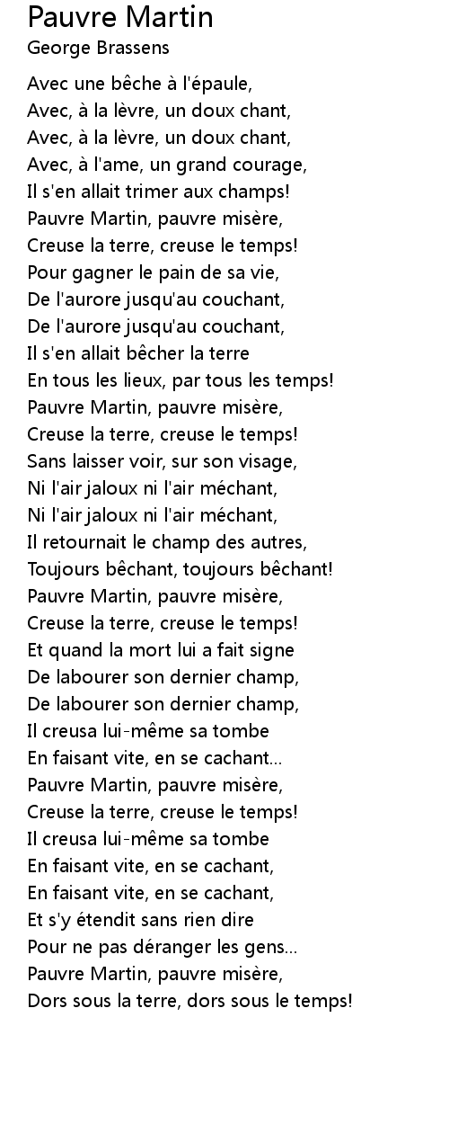 | [00:36.36] | Pauvre Martin, pauvre mise re, |