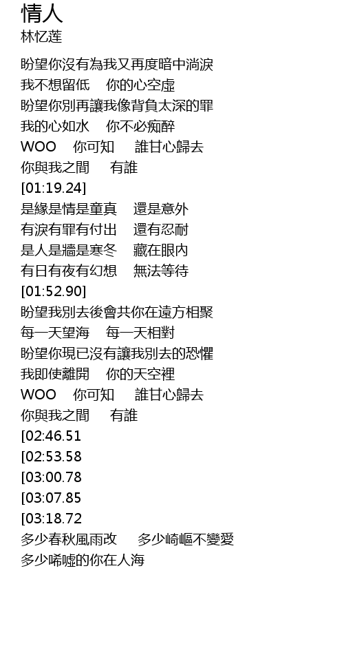| [04:01.64][02:46.51] | 是緣是情是童真 還是意外 |