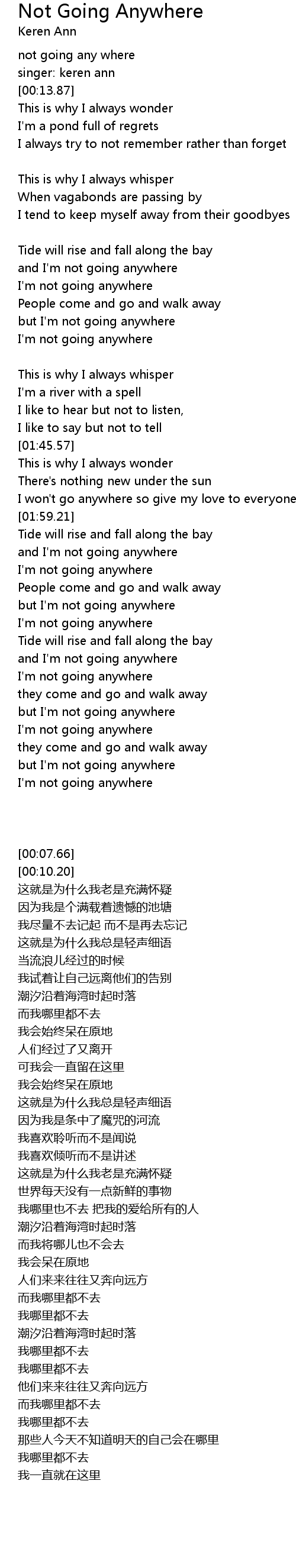 | [02:07.61] | 而我将哪儿也不会去 |