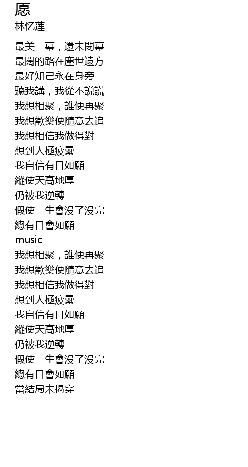 愿 歌词
