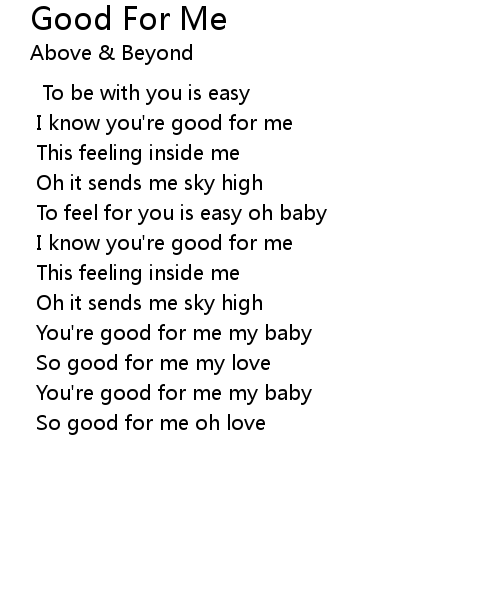 | I know you're good for me | |