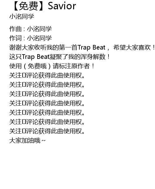 | 关注➕评论获得此曲使用权。 | |