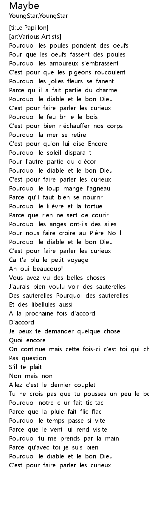 | [00:46.38] | Pourquoi le feu br le le bois |