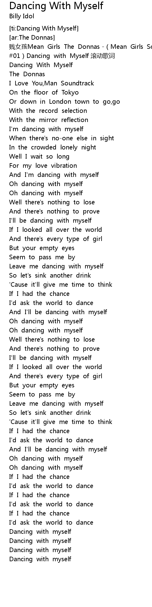 | [00:00.975] | jiàn nǚ hái Mean Girls The Donnas Mean Girls Soundtrack 01 Dancing with Myself gǔn dòng gē cí |