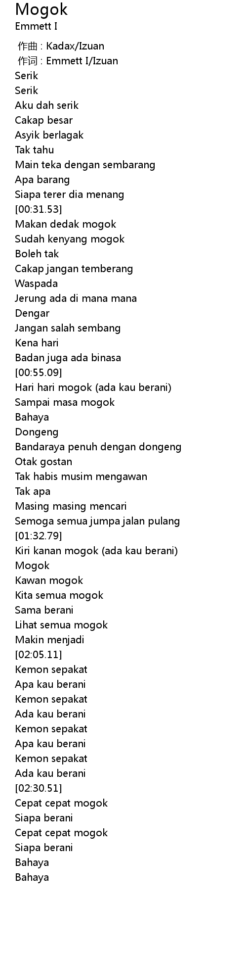 | [00:55.35] | Hari hari mogok (ada kau berani) |